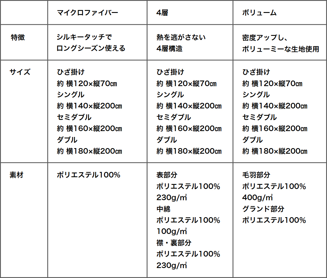 新しいひざ掛けタイプも、従来のブランケットシリーズと同様に、マイクロファイバー素材を使用しています。この素材は、細かな繊維が絡み合うことで空気を多く含み、優れた保温性を発揮します。また、軽量でありながら暖かさをしっかりと感じられるため、長時間の使用でも快適です。